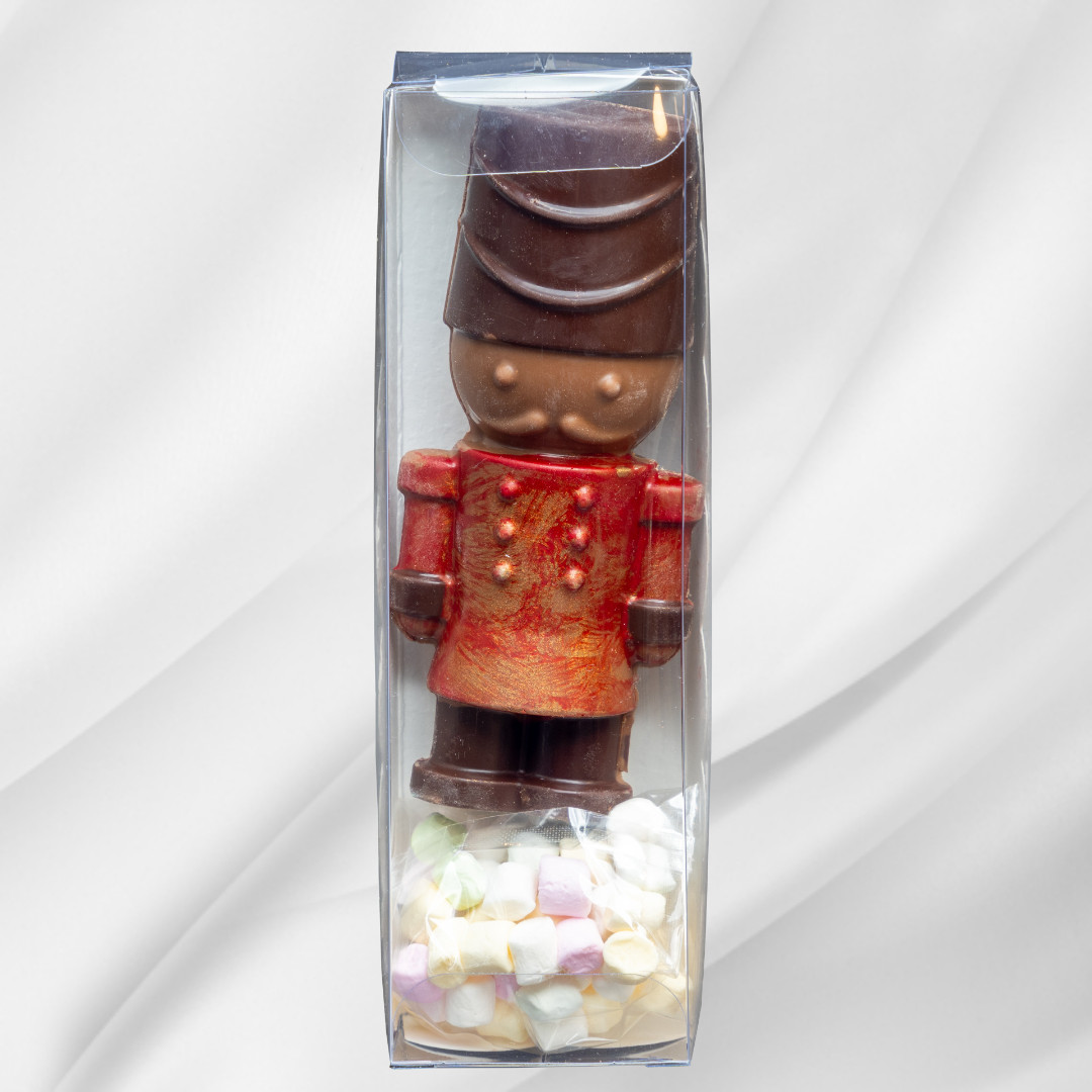 Sjokoladekompaniets Julekakao er definitivt julens beste drikkevare! Vår sjokolade tinnsoldat består av en utsøkt blanding av mørk og lys sjokolade og marshmallows ved siden av. Putt soldaten opp i en stor kopp med rykende varm melk, la han smelte litt og rør rundt. Toppes med marshmallows. Verdens beste og enkleste Julekakao for små (og store) barn i alle aldre!