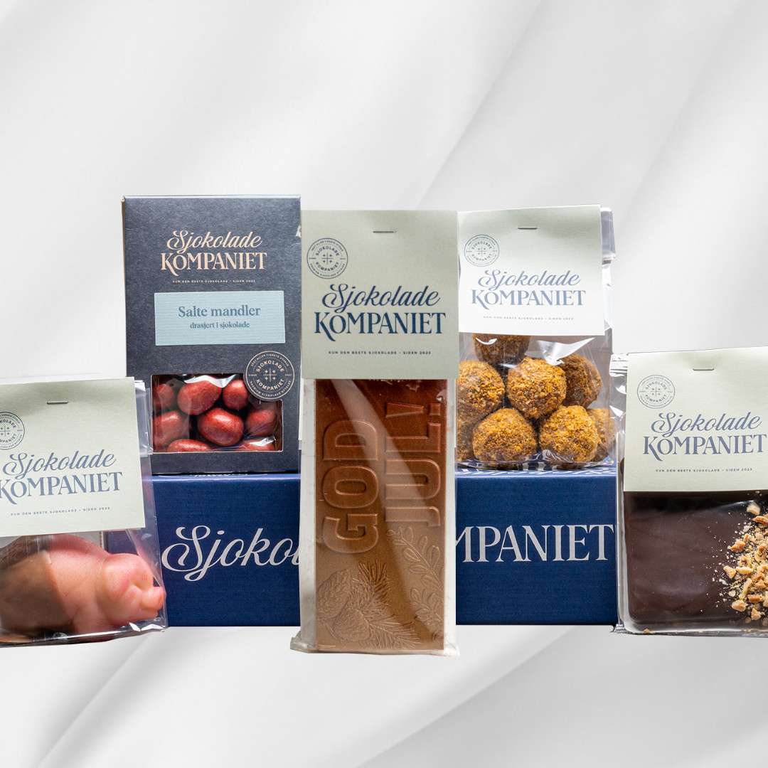 Julepakke – Julens beste produkter samlet i en eske! En salig blanding av sjokolade- og marsipanprodukter, her finner alle noe de kan like!