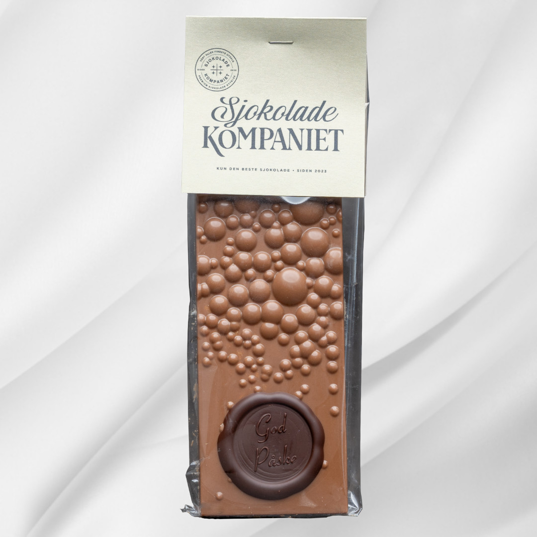 Påskecrunch – En krisp og god sjokoladeplate. Her har vi valgt en blanding av melkesjokolade og lys karamellsjokolade. I kombinasjon med sprøstekt pannekake, blir dette både velsmakende og knasende sprøtt i munnen. Dette må være den beste tur-sjokoladen på markedet, uten tvil. Passer godt når man har gjort en innsats i skisporet og fortjener en godbit ved siden av den obligatoriske appelsinen.